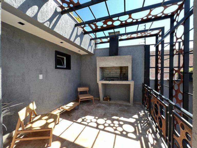 Cuenta con: estar cocina comedor con mesa tipo desayunador, 1 dormitorio con placard, baño completo, balcón con churrasquera, cochera cubierta.